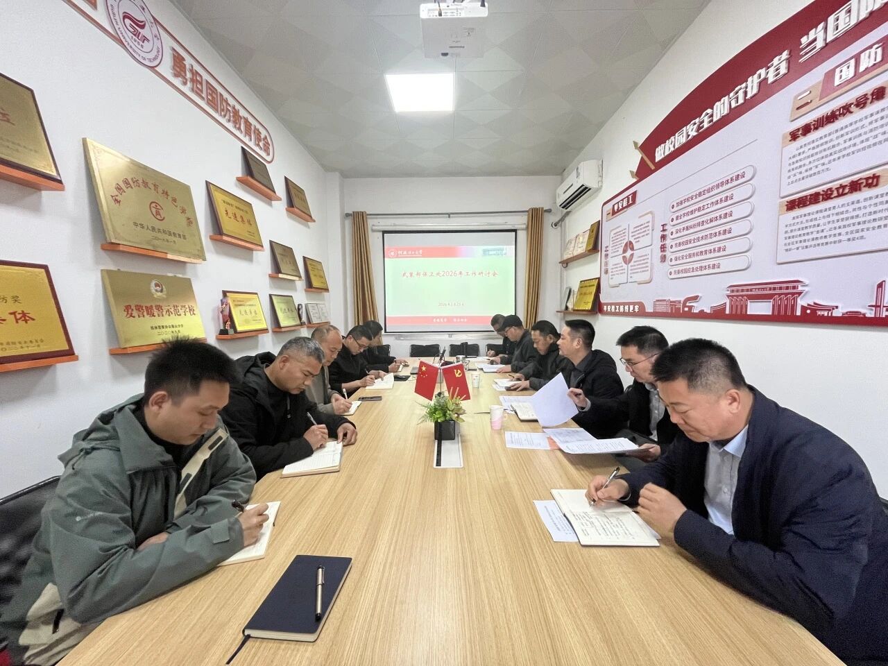 会上,武装部保卫处负责人首先汇报了部门2026年重点、难点工作及“十五五”规划情况,部门副职领导分别就分管工作进行了汇报。发展规划处负责人从学校全局出发,对武装保卫工作规划提出了建设性指导意见。