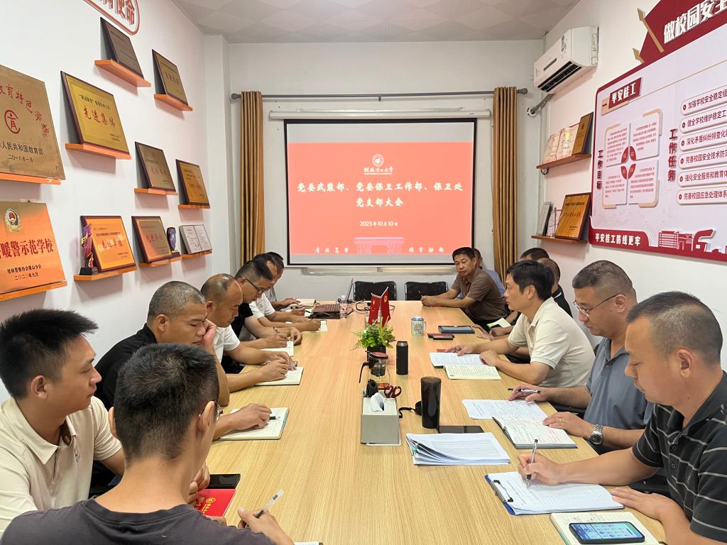 10月10日上午,党委武装部、党委保卫工作部、保卫处党支部在屏风校区保卫后勤楼103备勤室召开党员大会,会议由支部书记主持,支部全体在校党员参加。